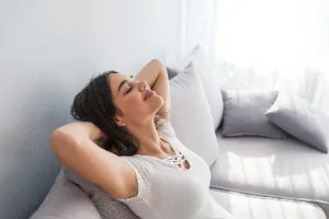 1. 의자에 앉거나 바닥에 누워 편안한 자세를 취합니다.